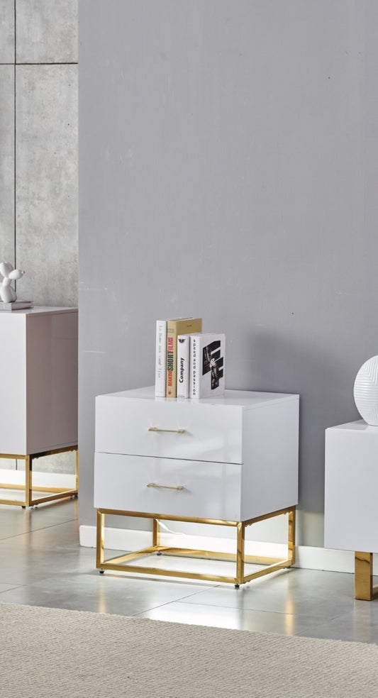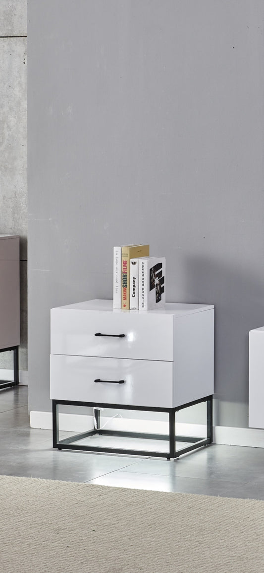 Chevet Alya Bois Laqué avec Finitions Chrome