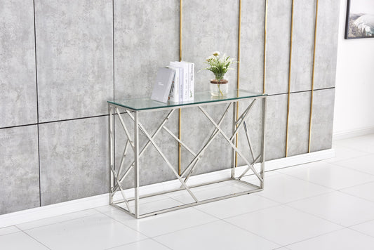 Console Flute en Inox et Verre Transparent 120x40x78 cm
