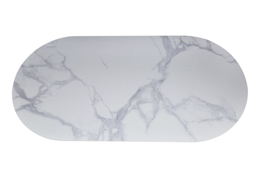 Table à manger Agnès – Pieds chrome et plateau effet marbre blanc 150x90x75 cm