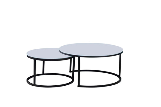 Table Basse Gigogne – Métal Noir & Plateau Verre Ultra Blanc
