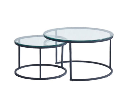 Table Basse Gigogne – Métal Noir & Plateau Verre Transparent