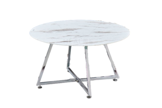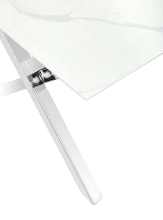 Table Basse IXE – Chrome & Marbre Blanc 120x60x45 cm