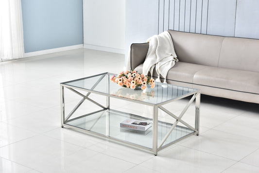 Table Basse IXE – Structure Métal & Plateau Verre Transparent 120x60x45 cm