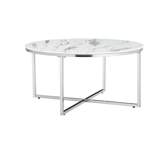 Table Basse Lorie – Pied Chrome & Plateau Marbre Blanc 90 cm