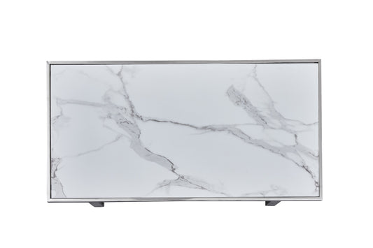 Table Basse Levanto – Métal Chrome & Plateau Marbre Blanc 120x60x45 cm