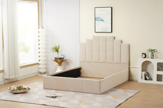 Cadre de lit Polo 160x200 cm en velours beige – vendu sans sommier