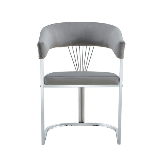 Chaise avec Accoudoirs Brittany en Velours Gris Silver et Pieds Chromés – Confort et Modernité
