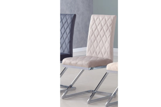 Chaise Nevada Capitonnée avec Boutons en Velours Beige et Pieds Chromés