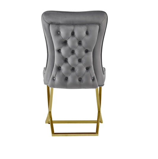 Chaise Gabrielle en Velours Anthracite avec Pieds Gold