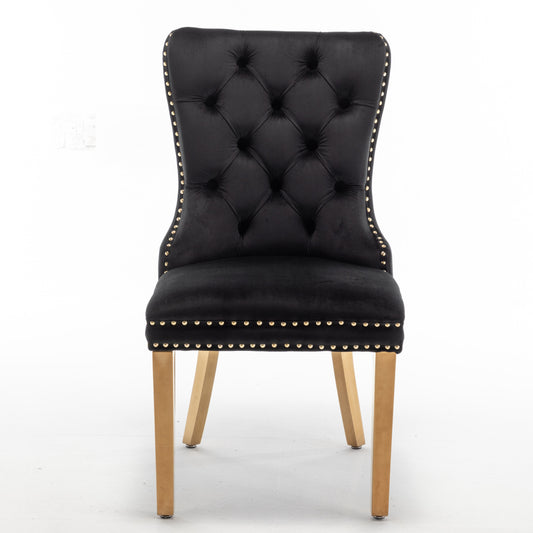 Chaise Anneau Cloutée en Velours Anthracite avec Pieds Dorés – Élégance et Confort