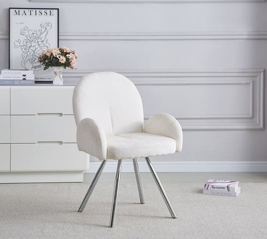 Chaise Teddy en Tissu Doudou avec Pieds Chromés – Douceur et Modernité