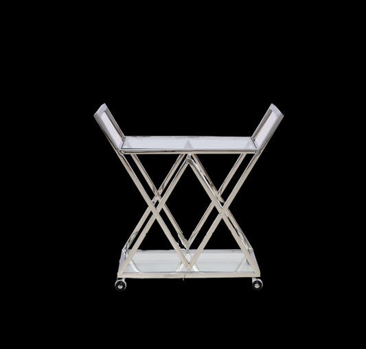 Chariot Triangle en Chrome et Verre Transparent – Pratique et Design