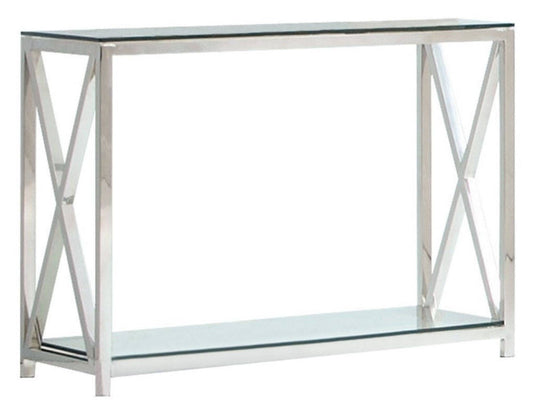 Console Pyramide en Chrome avec Plateau Verre Transparent – 120x40x78 cm