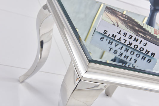 Bout de Canapé Alina chrome– Plateau transparent 50x50 cm