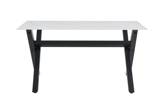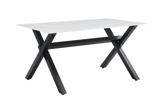 Table repas Ixe – Pieds métal et plateau effet marbre blanc 150x90x70 cm