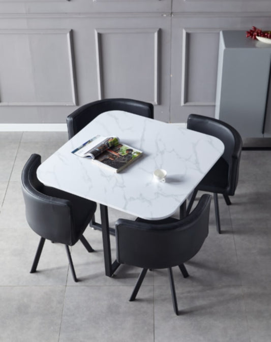Table repas Vendôme – Plateau effet marbre avec 4 chaises – 100x100x75 cm