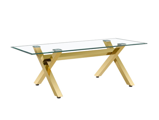 Table repas Ixe – Pieds métal gold et plateau transparent 180x90x75 cm