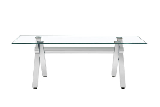 Table repas Ixe – Pieds métal chrome et plateau transparent 150x90x75 cm