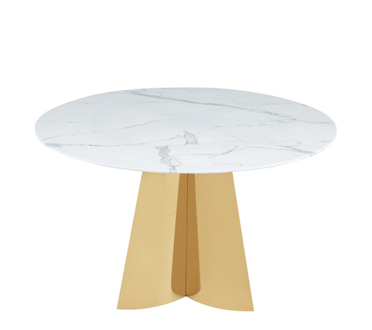 Table repas Capucine – Pieds gold et plateau effet marbre blanc 130x75 cm