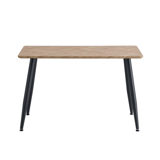 Table repas Ammo – Pieds métal noir et plateau style point de Hongrie 120x70x75 cm