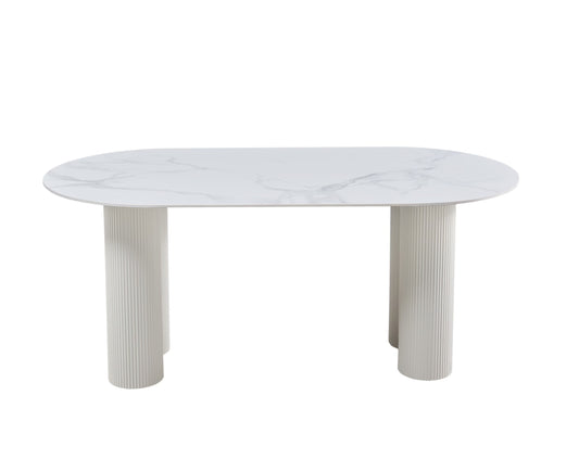 Table Venezia – Pieds beige et plateau céramique effet marbre blanc