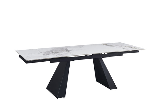 Table extensible Gulliver – Pieds métal noir et plateau céramique effet marbre blanc 160/240x90x75 cm