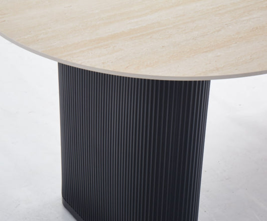Table de repas Solal – Pied effet travertin et plateau céramique travertin mat Ø120 cm