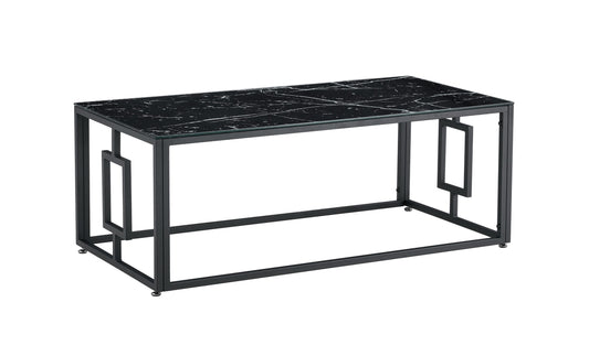 Table Basse Levanto – Pieds Métal Noir & Plateau Verre Marbre Noir 120x60x45 cm