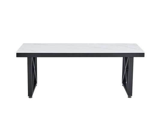 Table Basse Levanto – Pieds Métal Noir & Plateau Marbre Blanc 120x60x45 cm