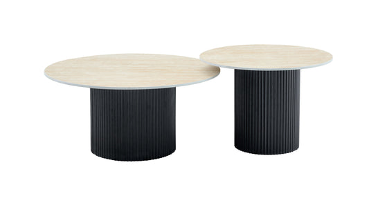 Tables Basses Gigognes Mina – Pieds Noirs & Plateaux en Céramique Effet Travertin Mat (60x45 cm + 80x38 cm)