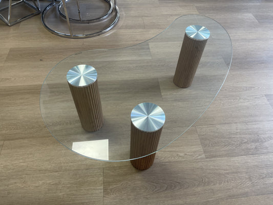 Table Basse Pylone – Pied Chêne & Plateau Transparent 120x70x45 cm