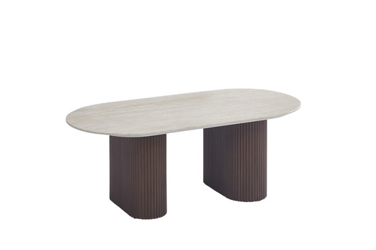 Table Basse Roxy – Pieds Effet Travertin & Plateau en Céramique Travertin Mat 120x60x45 cm
