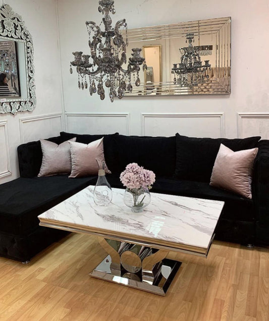 Table Basse Trofy – Pieds Gold & Plateau Marbre Noir 120x70x49 cm