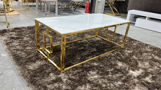 Table Basse Sophie – Gold & Marbre Blanc 120x60x45 cm