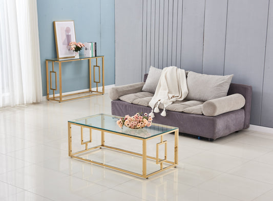 Table Basse Sophie – Métal Gold & Plateau Transparent 120x60x45 cm