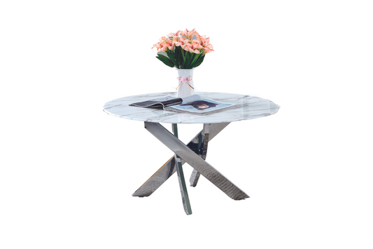Table Basse Levanto – Métal Chrome & Plateau Marbre Blanc 120x60x45 cm