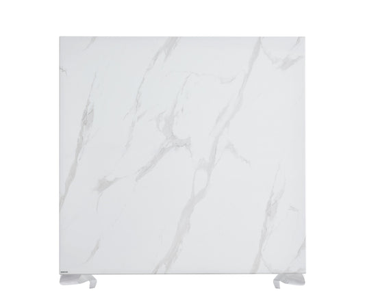 Table de Repas Baroque Carrée – Finition Chrome & Plateau en Marbre Blanc 140x140x75 cm