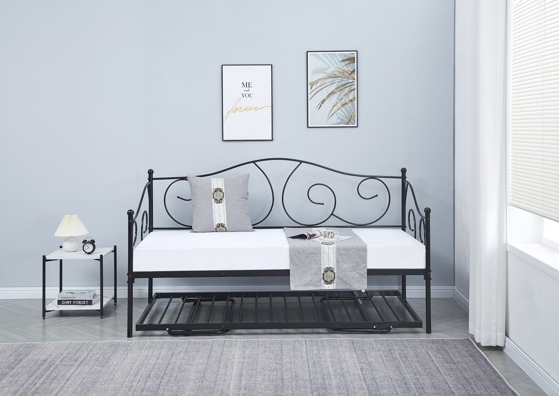 Polyvalente et élégante, la banquette lit en métal noir 90x190 cm est idéale pour allier confort et praticité. Son design sobre et moderne s’intègre facilement dans tout type d’intérieur, que ce soit une chambre d’amis, un studio ou un espace de détente. Fonctionnelle, elle peut servir à la fois de lit confortable et de banquette conviviale en journée.