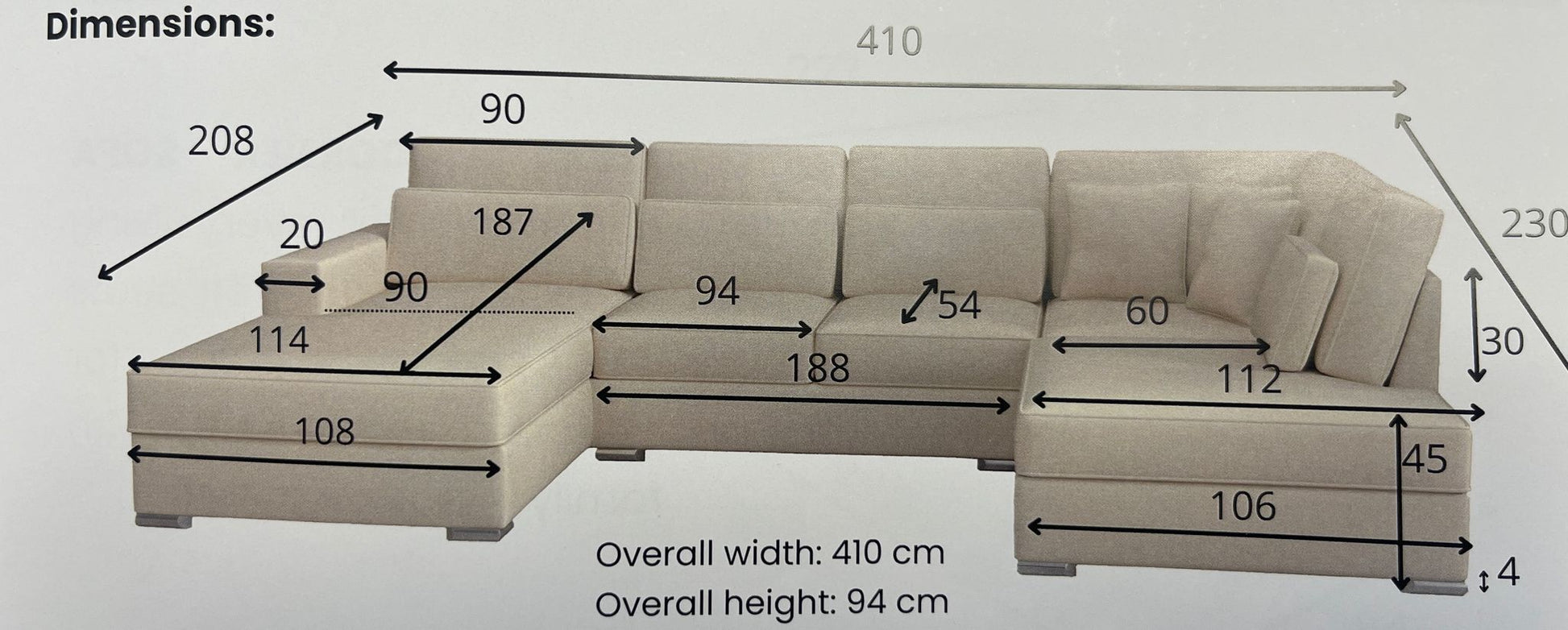 Canapé Bristol – Panoramique spacieux 400 x 230 x 94 cm