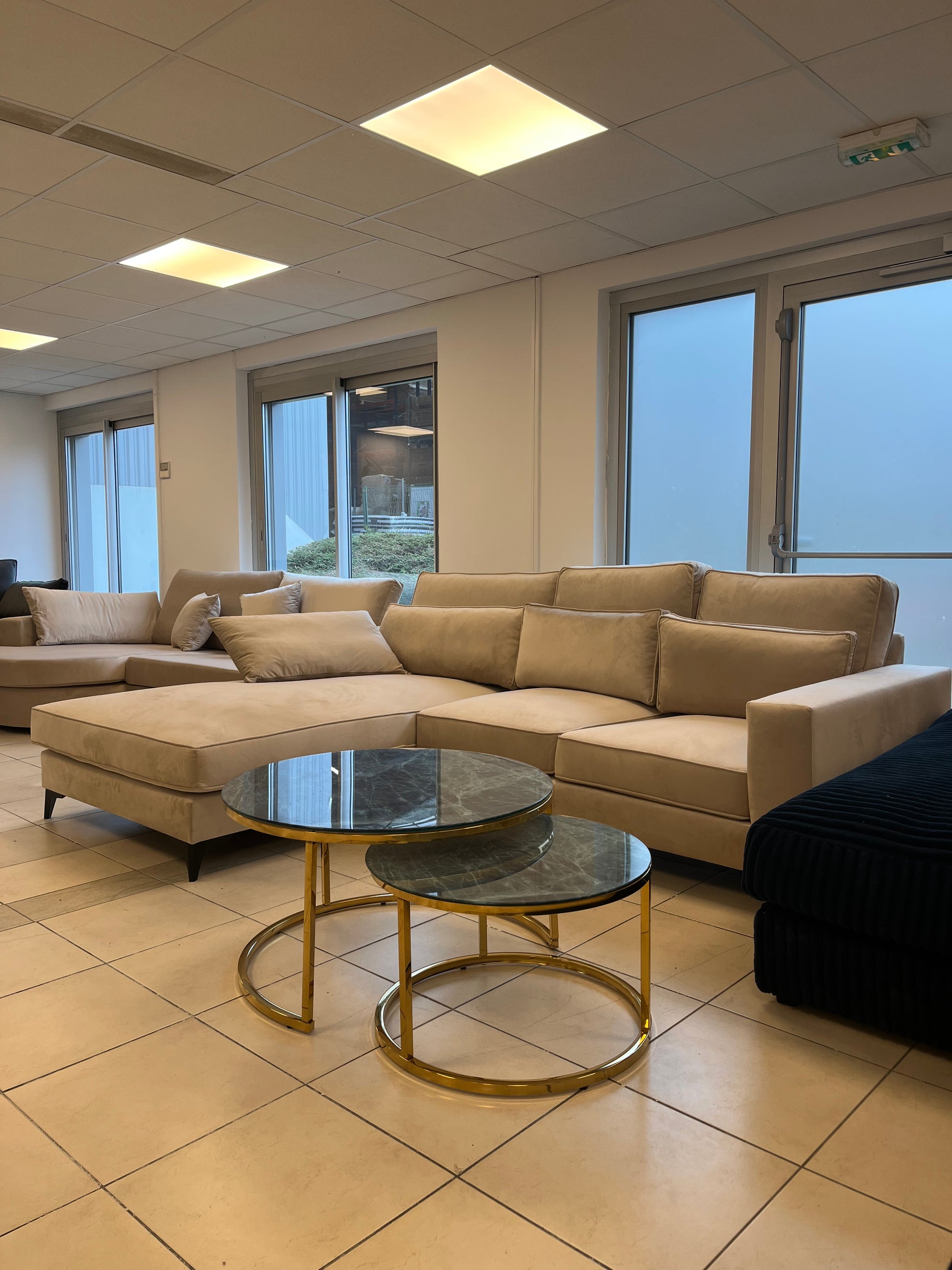 Apportez une touche de raffinement et de confort à votre salon avec ce canapé d’angle gauche en velours beige. Avec ses dimensions généreuses de 265 x 200 cm, il offre un espace idéal pour se détendre, recevoir vos proches ou profiter de moments conviviaux en famille.
