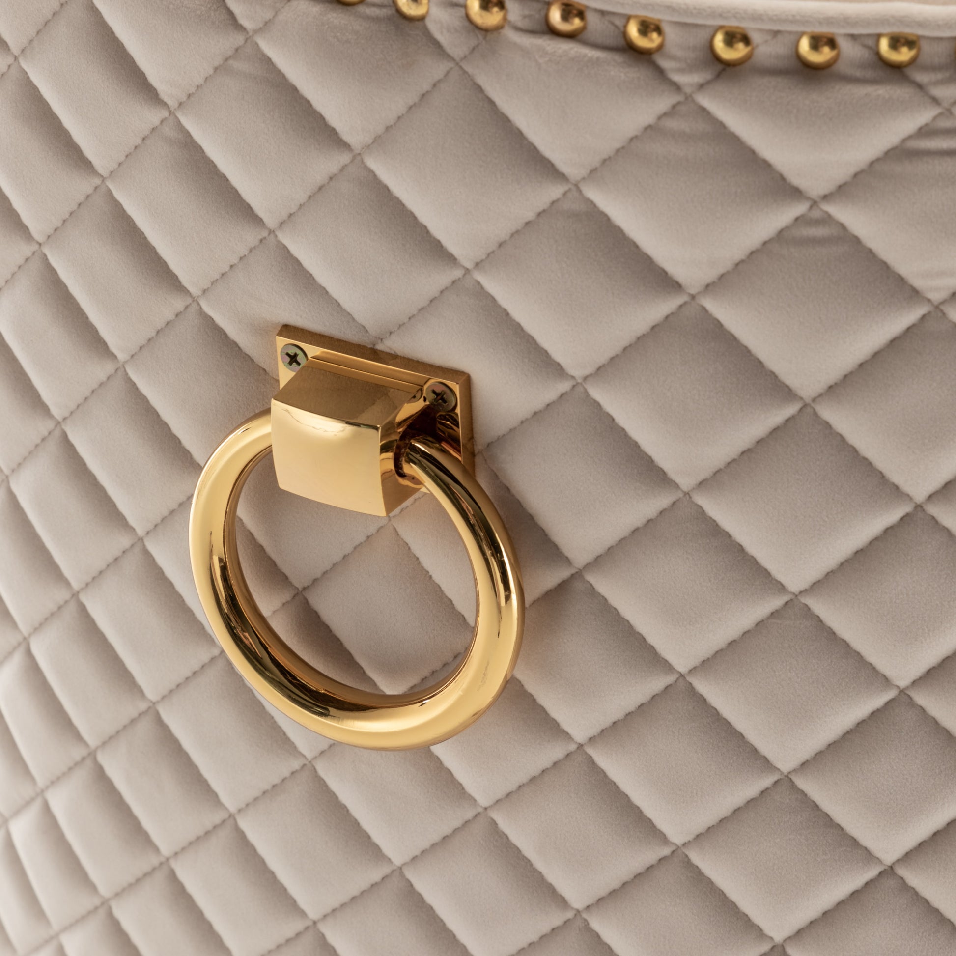 Chaise Anneau Cloutée Matelassée en Velours Beige avec Pieds Dorés – Luxe et Élégance