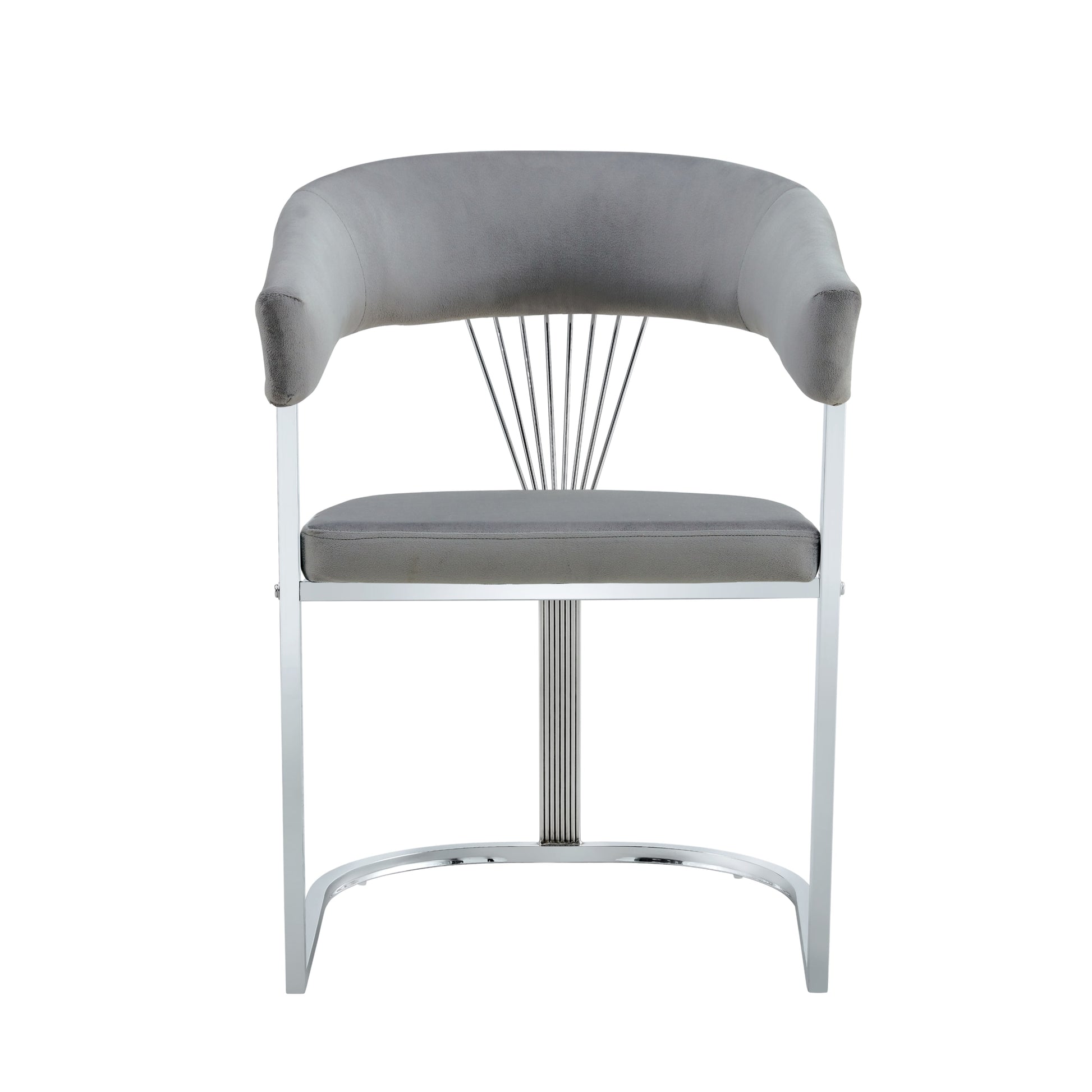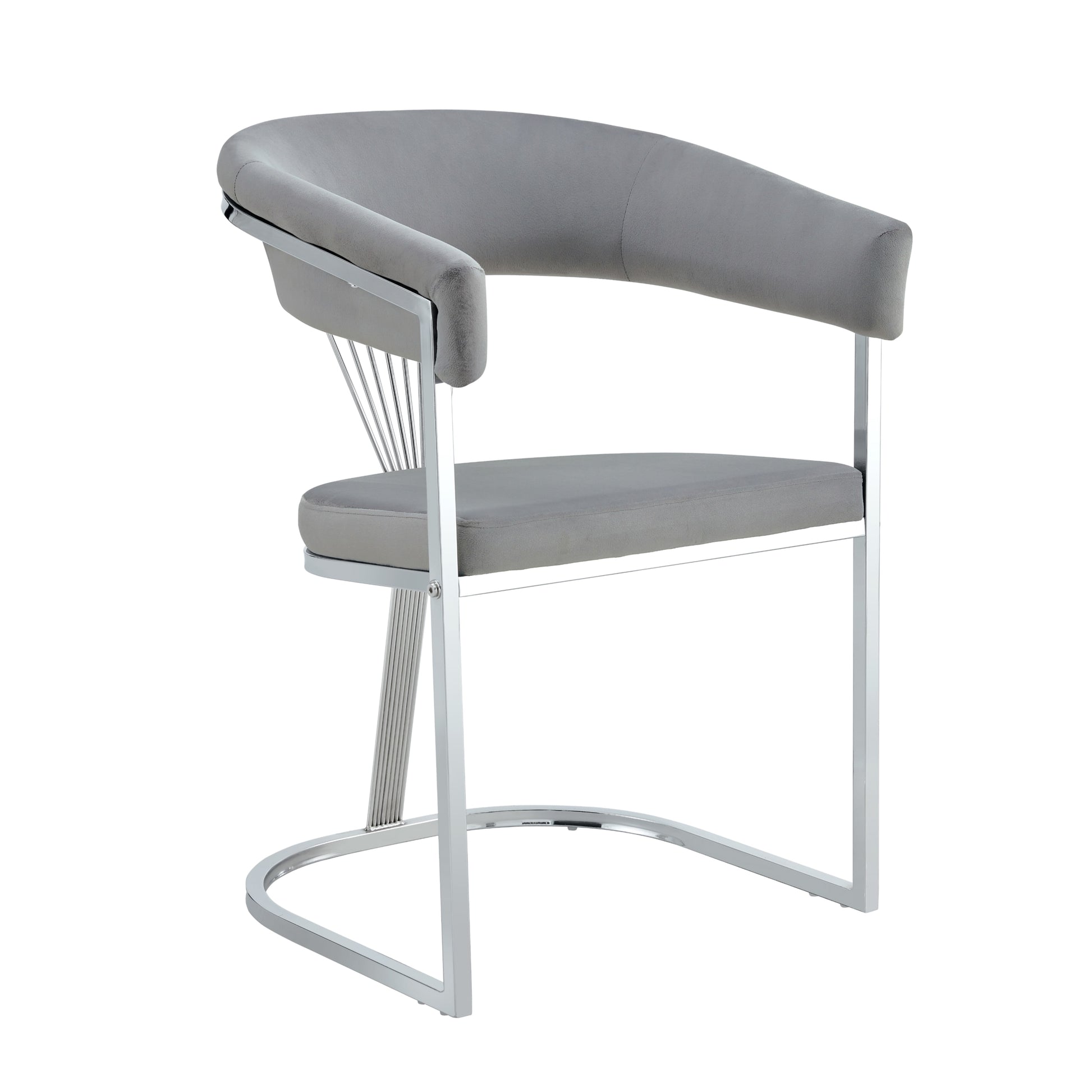 Chaise avec Accoudoirs Brittany en Velours Gris Silver et Pieds Chromés – Confort et Modernité