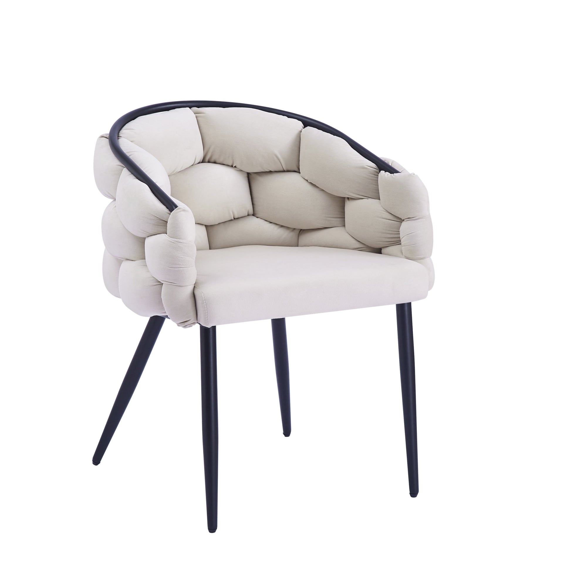 La chaise Ballon séduit par son design arrondi et contemporain. Son assise en velours beige doux offre un confort optimal, tandis que ses pieds en métal noir assurent stabilité et solidité. Idéale pour une salle à manger, un bureau ou un espace lounge, elle apporte une touche moderne et élégante à votre intérieur.