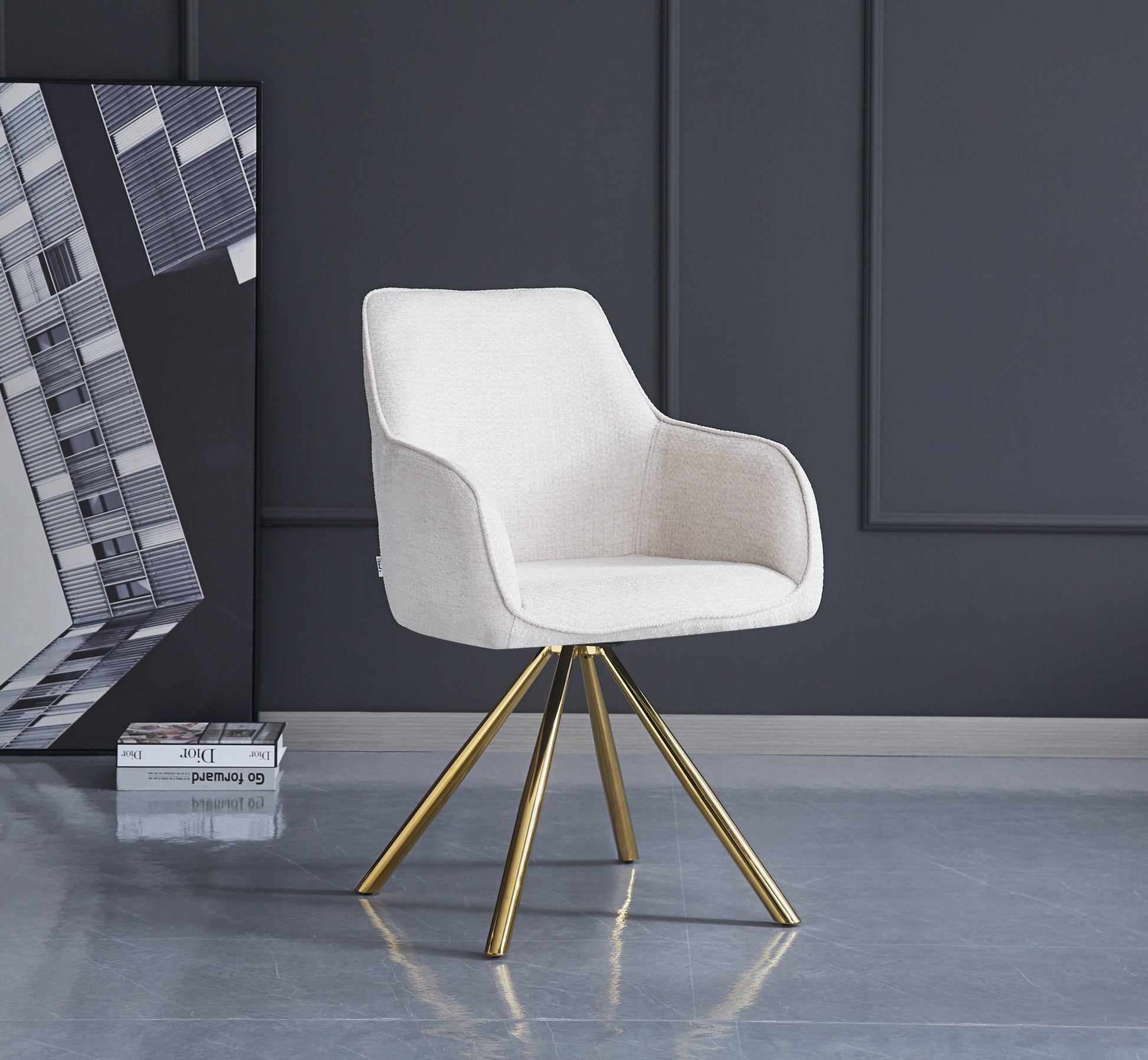 Chaise Lola avec Accoudoirs en Tissu Écru et Pieds Dorés – Confort et Élégance