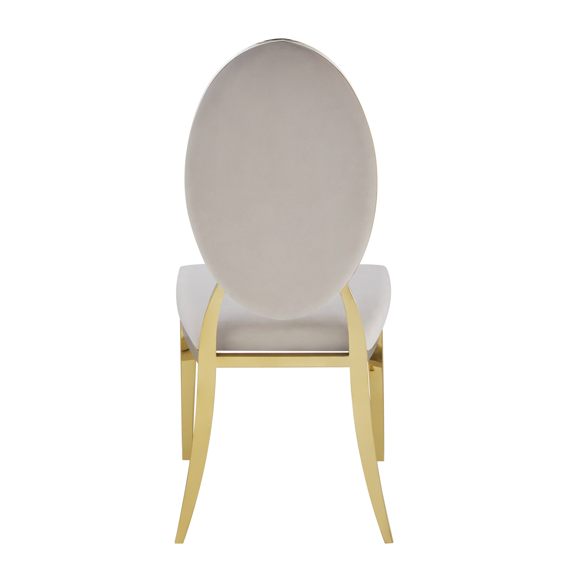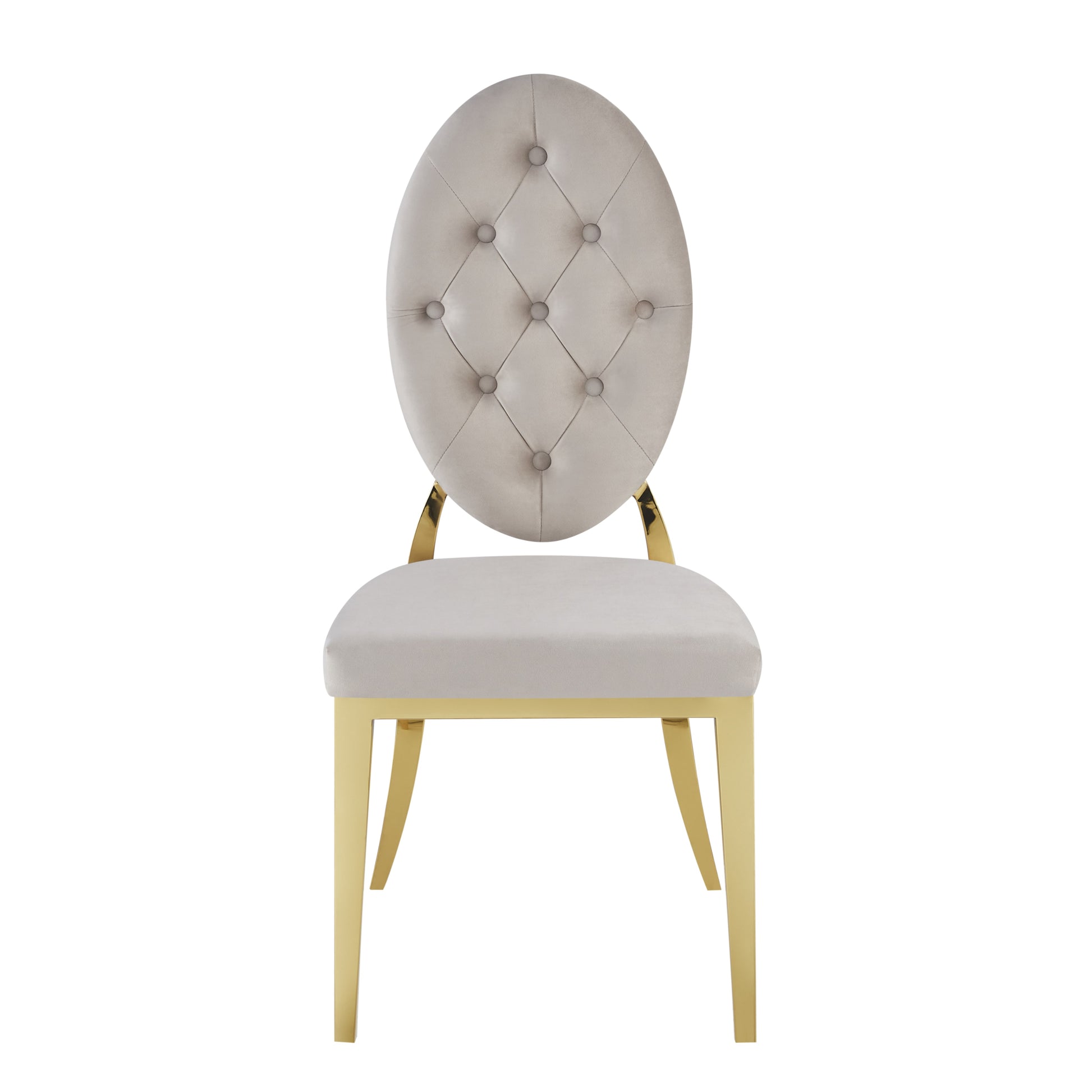 La chaise Médaillon séduit par son dossier capitonné et sa silhouette inspirée du style baroque revisité. Revêtue d’un velours moka raffiné, elle offre confort et douceur, tandis que son piètement doré assure robustesse et apporte une touche luxueuse. Idéale pour une salle à manger chic, un bureau élégant ou un espace de réception, elle allie charme classique et modernité.