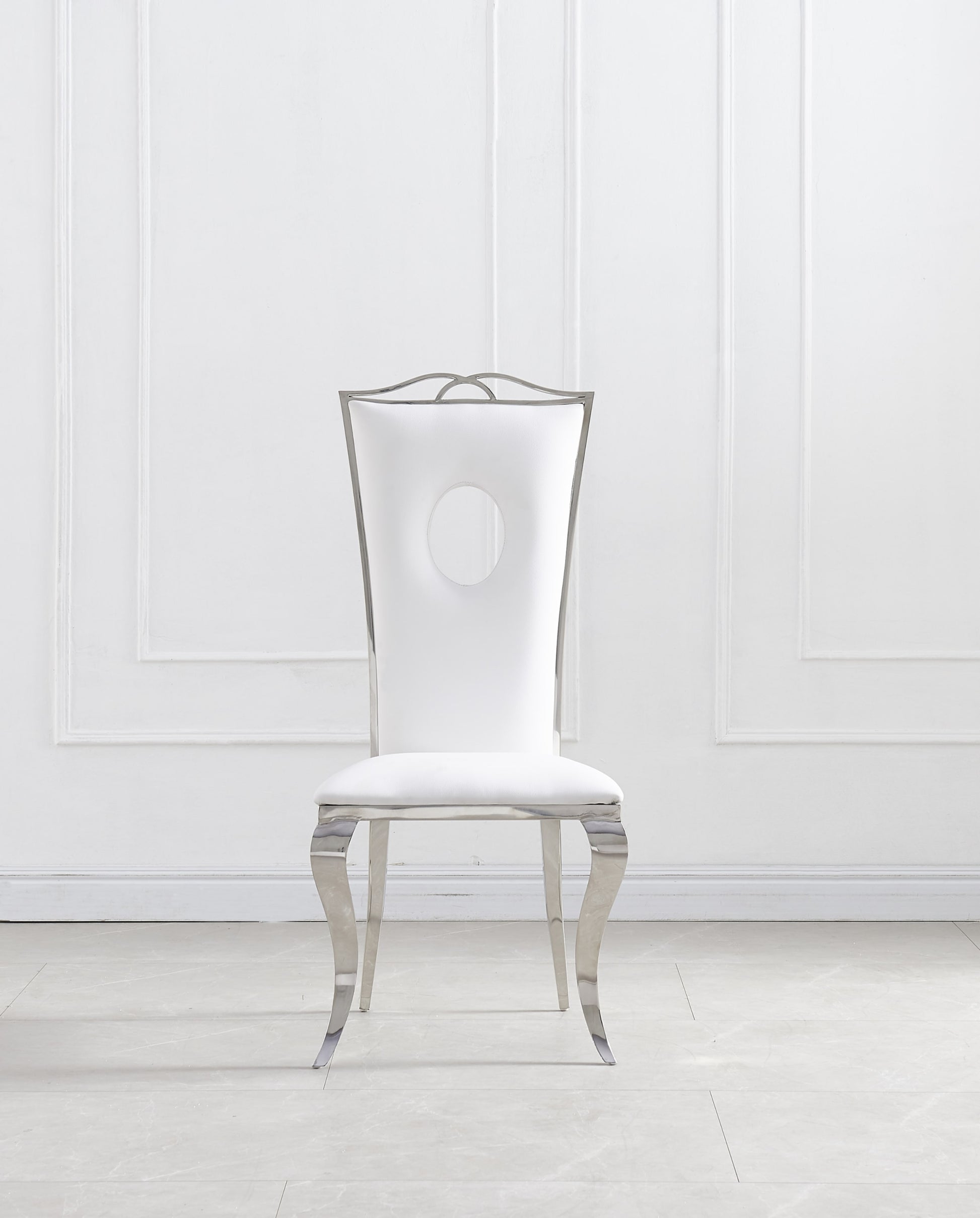 Chaise Royal en Similicuir Blanc avec Pieds Chromés – Élégance et Modernité