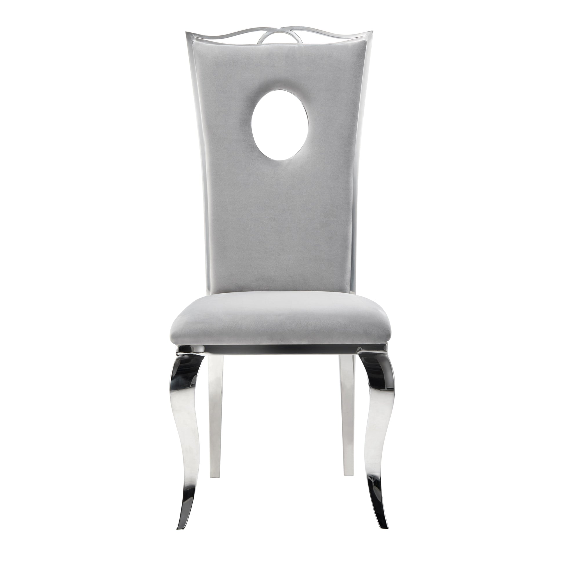 Chaise Royal en Velours Gris avec Pieds Chromés – Élégance et Modernité