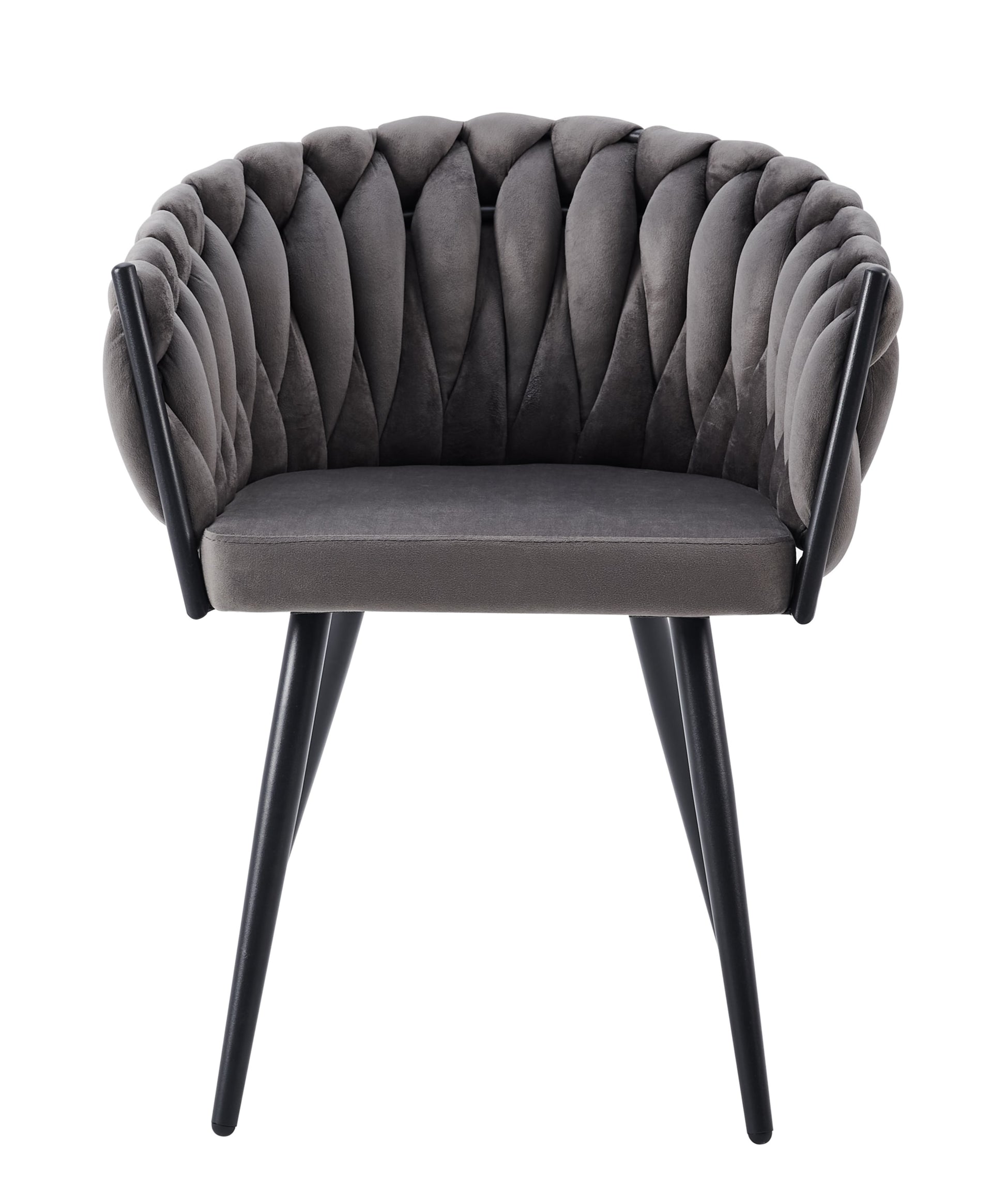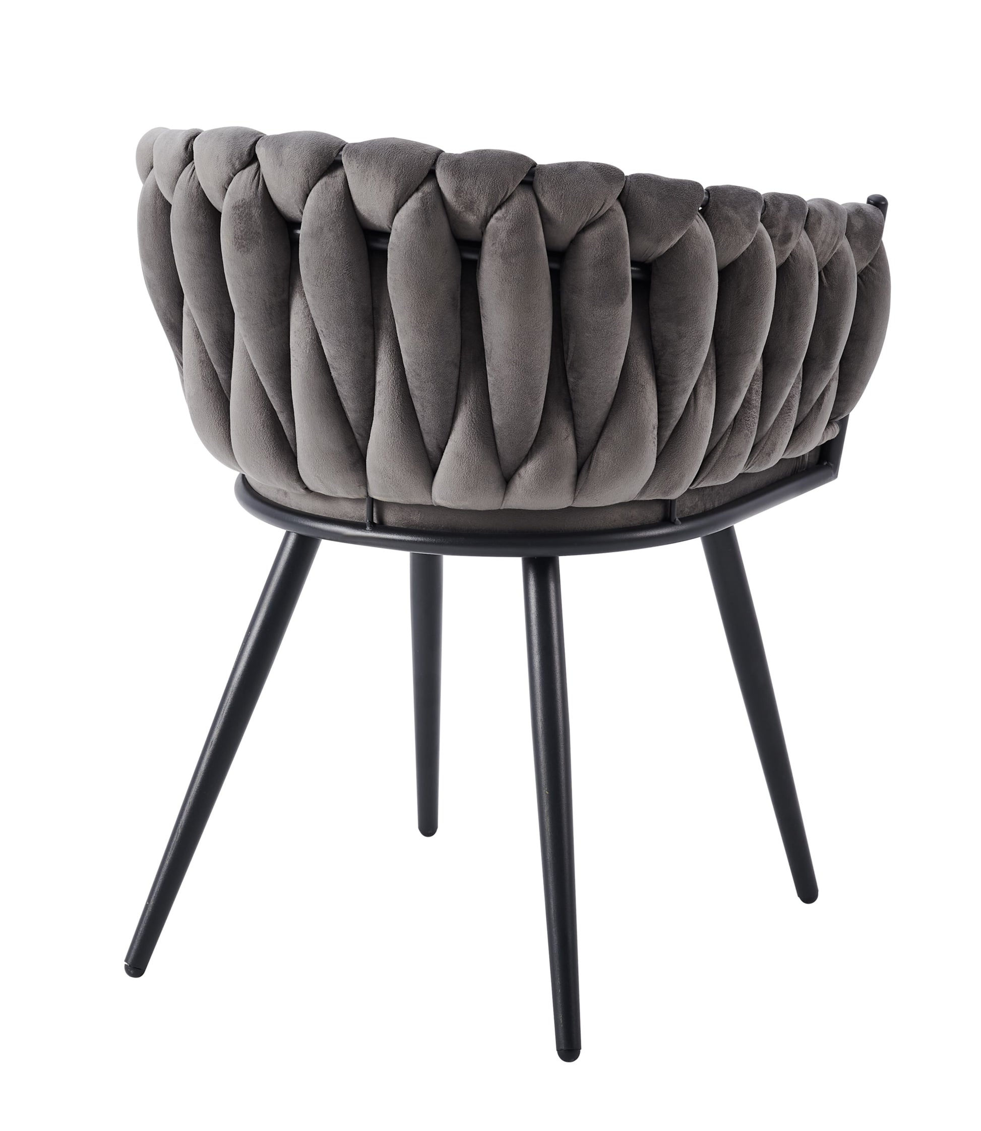 Chaise Tressée avec Accoudoirs en Velours Anthracite et Pieds Métal Noir – Élégance et Confort