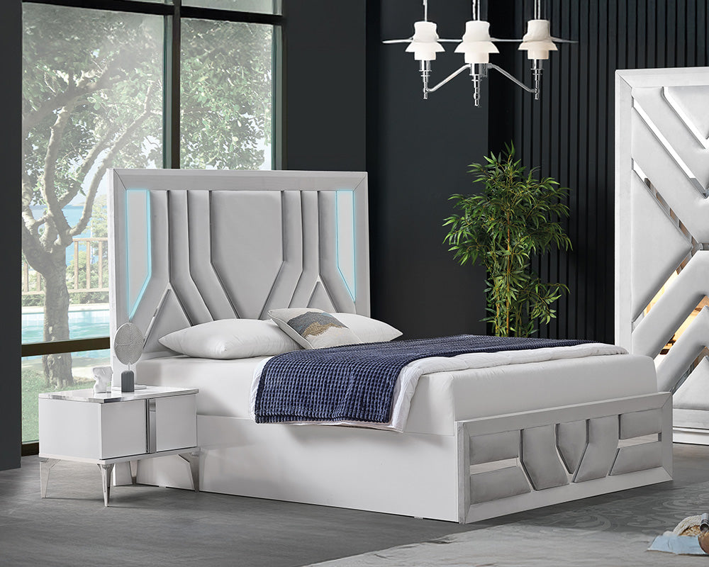 Alliez caractère et élégance avec la chambre à coucher Boss-110. Cet ensemble moderne se distingue par son design épuré et ses finitions soignées. Composé d’un lit spacieux, de chevets assortis et d’une armoire fonctionnelle, il offre à la fois confort et praticité. La chambre Boss-110 est idéale pour créer un espace de repos harmonieux, moderne et plein de style.