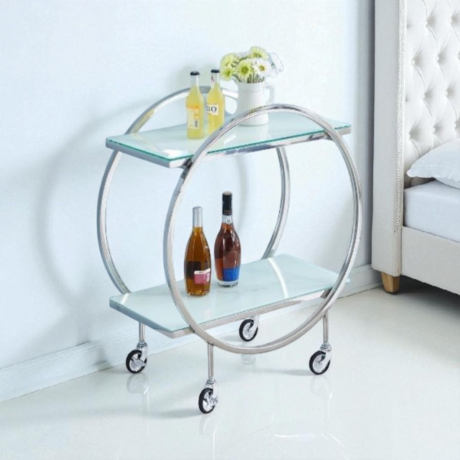 Chariot en Argent avec Plateau en Marbre Blanc – Élégance et Praticité